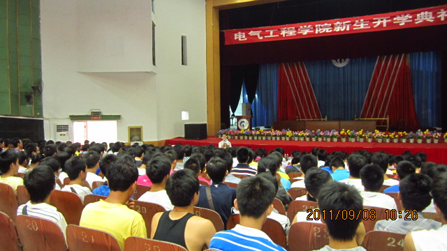 教师代表陈文光教授重点解释了“电气工程”的“工程”二字,要求新生们发挥自己的聪明才智,充分利用学院优越的软硬件设施,在不久的将来成为电气学研究方面的中坚。