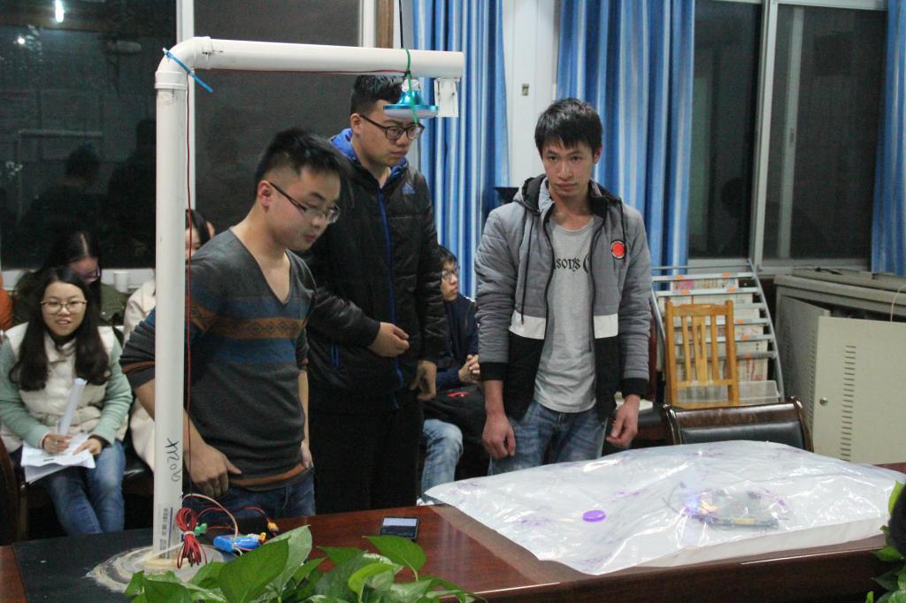 19:30分,比赛正式开始,第一组参赛的项目是《共享打印机》,首先参赛选手从多方面分析了现实生活中打印的排队时间长和保密性能差等各种不足之处,接着他们提到了通过共享打印机能够弥补这些不足,通过线上打印,人未到纸已出,大大节约了大家的时间。在之后的点评环节,老师们也对该项目提出了很多有用的建议。第二组参赛作品以《基于模糊控制的生物质能灶的控制理论的研究》为名的理论型作品。之后各种脑洞大开的创意发明也是夺人眼球。其中第八组的《快易点公交app》让大家看到了不一样的公交系统,第九组的《自我修复液压型井盖》、第十组的《可变光谱农作物光伏灯》、第十一组的《智能小车双闭环模糊PID:直流调速系统的研究》也是各具特色。各作品独具匠心,让现场所有人享受了一场奇妙世界漂流。