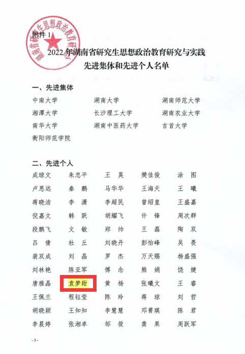 beat365官方网站辅导员袁梦甜老师被授予“2022年湖南省研究生思想政治教育研究与实践先进个人”荣誉称号