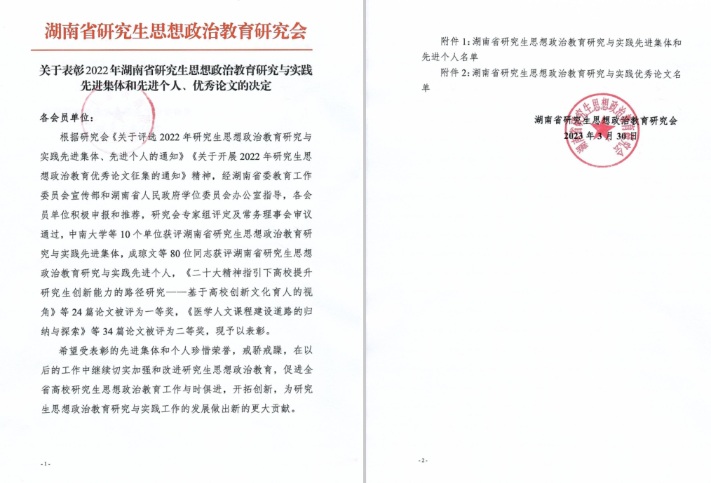 近日,在湖南省研究生思想政治教育研究会组织开展的2022年先进集体、先进个人和优秀论文的评选中,beat365官方网站辅导员袁梦甜老师获评“2022年湖南省研究生思想政治教育研究与实践先进个人”。