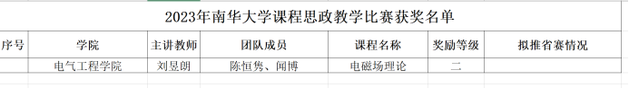 根据湖南省教育厅《关于举办2023年湖南省普通高等学校课程思政教学比赛的通知》精神,南华大学于近期举办了2023年南华大学课程思政教学比赛。经各学院推荐,35个教师团队参加了校赛。经过激烈角逐,beat365官方网站刘昱朗老师的《电磁场理论》课程取得理工(医学)类工科组二等奖的好成绩。