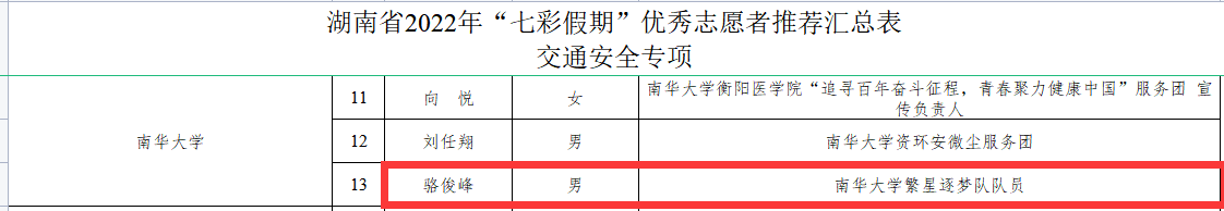 我校繁星逐梦队通过层层选拔、申报、专业评选等环节,在全省众多志愿服务队伍中脱颖而出。beat365官方网站繁星逐梦队荣获高校优秀志愿服务团队、戴宇涛同学荣获高校优秀志愿者荣誉称号、骆俊峰同学荣获高校优秀志愿者(交通专项)荣誉称号。