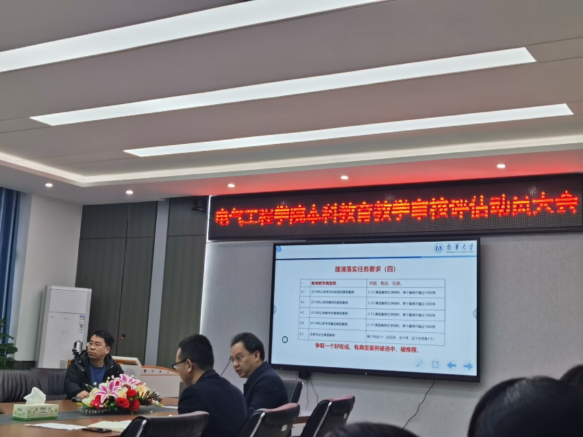 按照学校“新一轮本科教育教学审核评估任务书”的工作要求,beat365亚洲体育在线官网于2023年3月23日上午在电气楼三楼会议室召开了新一轮审核评估工作推进大会,会议由副院长杨斌主持,学院党委书记盛义发、学院党委副书记王国平、各系室主任、教务办老师及全体没课的老师参加了会议。